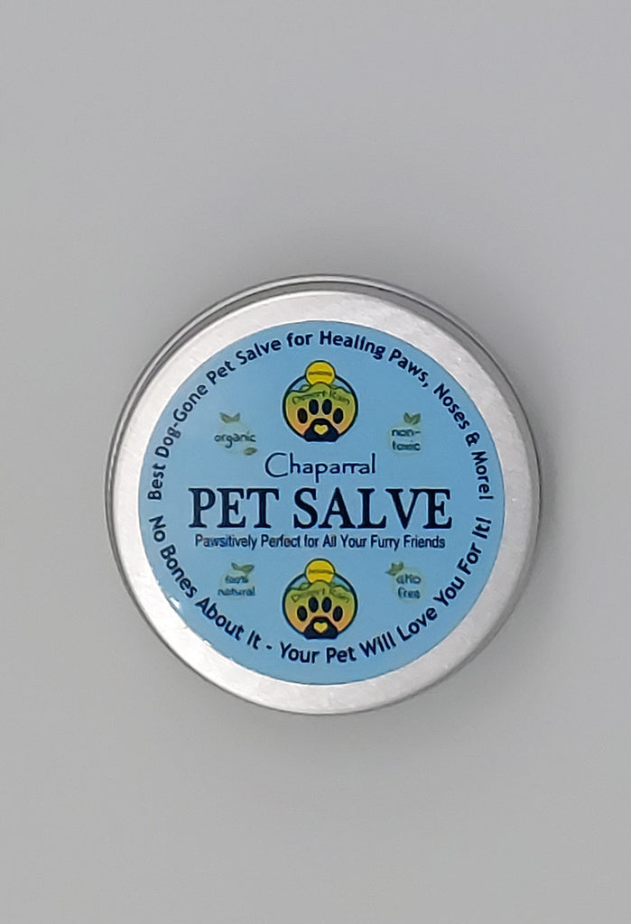 Best dog-gone pet salve for healing paw pads, dry noses, skin irritations, flea bites and more! No bones about it. The Chaparral plant has amazing healing properties. It's a natural anti-biotic, anti-septic and anti-inflammatory.